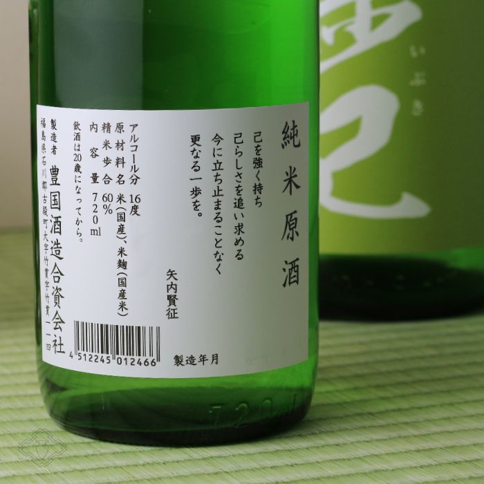 「一歩己(いぶき)」は、天保年間創業、福島県石川郡の豊国酒造の9代目蔵元、矢内賢征氏の手によって2011年より生まれた新しい銘柄です。 それまでは「東豊国」銘柄で地元でのみ流通されてきましたが、「一歩己」は全国の専門酒販店に流通されるようになった注目の酒です。
